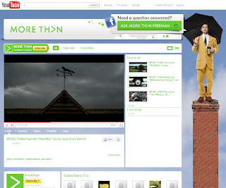 Their Click-to-Play masthead plays a short clip from the 'rooftile' home insurance ad and then leads through More Th>n's branded YouTube channel for more TV ads, a 'making of the ads' film, and other features such as links through to follow on Twitter and Facebook.